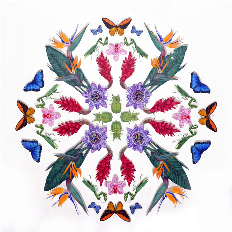Hisham Echafaki’s paintings play with intricate repetitive patterns found in nature and examine the impact that humankind exerts on its fragile balance.