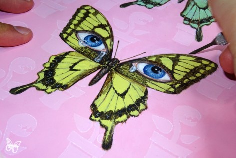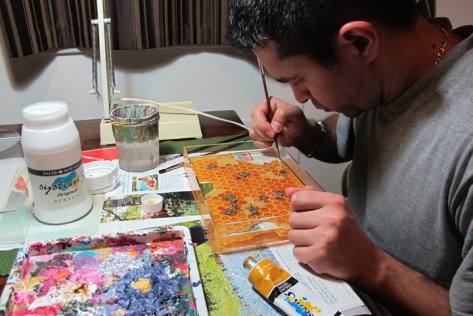Most intriguing are the 3D paintings. Using several layers of resin, Hisham Echafaki paints three-dimensional insects, that give the optical illusion they are taxidermy specimen embedded in resin. Each piece is a tribute to the beautiful intricacy and complexity of the insect world but also a critique of how humans are affecting and shaping evolutionary changes in animal species.