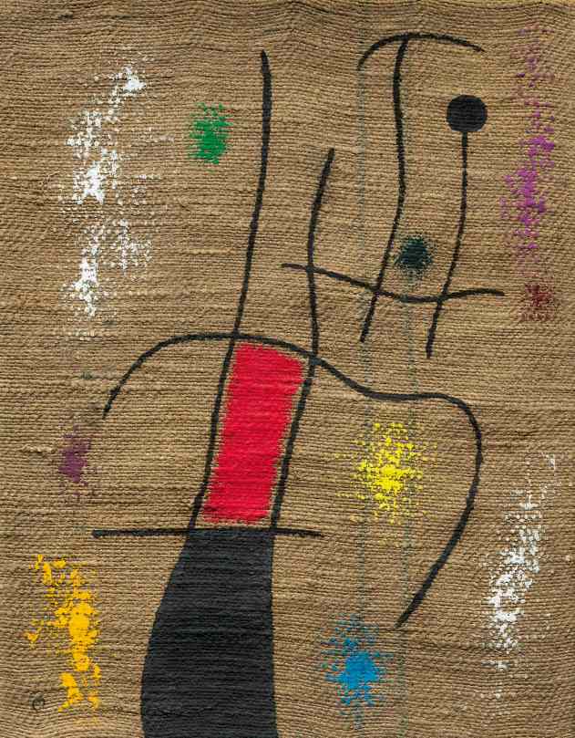 Courtesy of Mayoral October 2, 2018 4161 × 5341 London: PAD Art Fair Joan Miró Femme et oiseau V/X (1960) Oil on burlap 54 x 42 cm (21 1/4 x 16 1/2 in) Signed with the initial M (lower left); signed Miró, titled and dated 14/5/60 on the reverse Courtesy of Mayoral