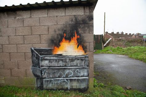 For the festive season, Banksy just revealed a new artwork in Port Talbot, South Wales. As usual placement is key and the image appears on two sides of a garage depicting a child enjoying snow falling – while the other side reveals it is a fire emitting ash.