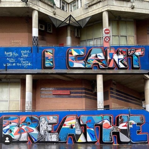 Curtain lace banners ‘Notes From A Phantom’ display writings/poems and call to action that occurred during the UK lockdown in collaboration with Minneapolis based artist Ego Ahaiwe Sowinski. The two pieces with their gray texts are screen printed onto black lace, reminiscent of traditional face coverings in mourning and are a reference to the unlawful murder of George Floyd in the US and the Black Lives Matter protests that took place subsequently after the killing. They speak about the importance and the power of Stillness and Silence from the maddening world around them.