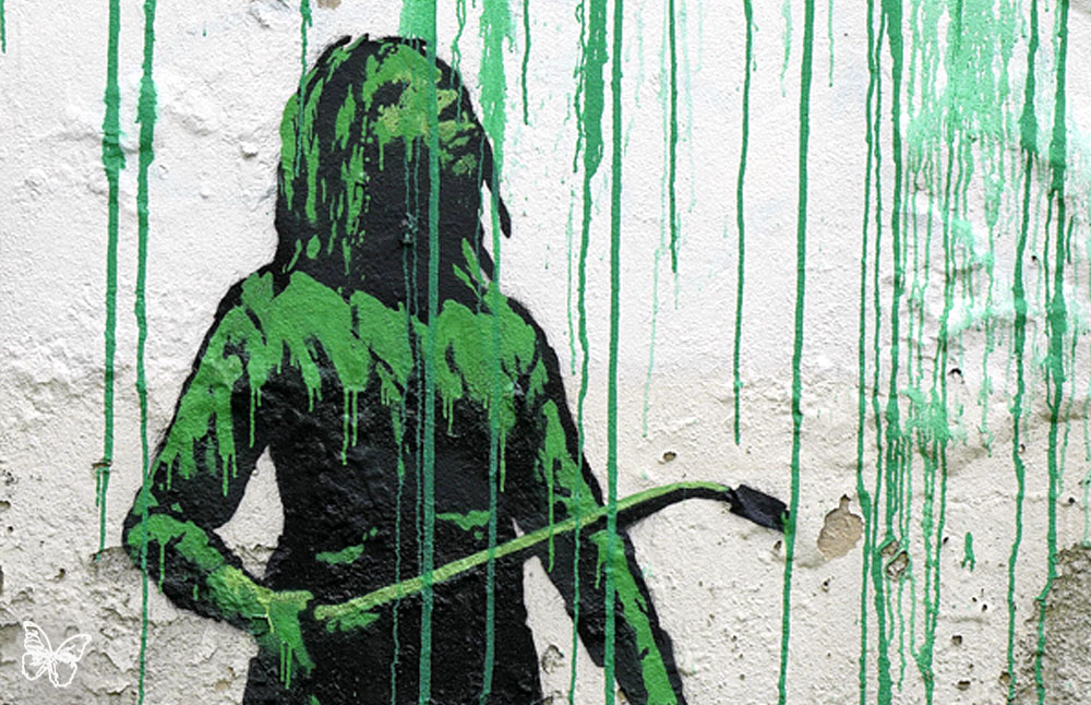 Banksy’s attention to detail is noticeable with the green colour palette matching the one used by Islington Council for signs in the local area. This also helped him act unnoticed despite the bright green colour.