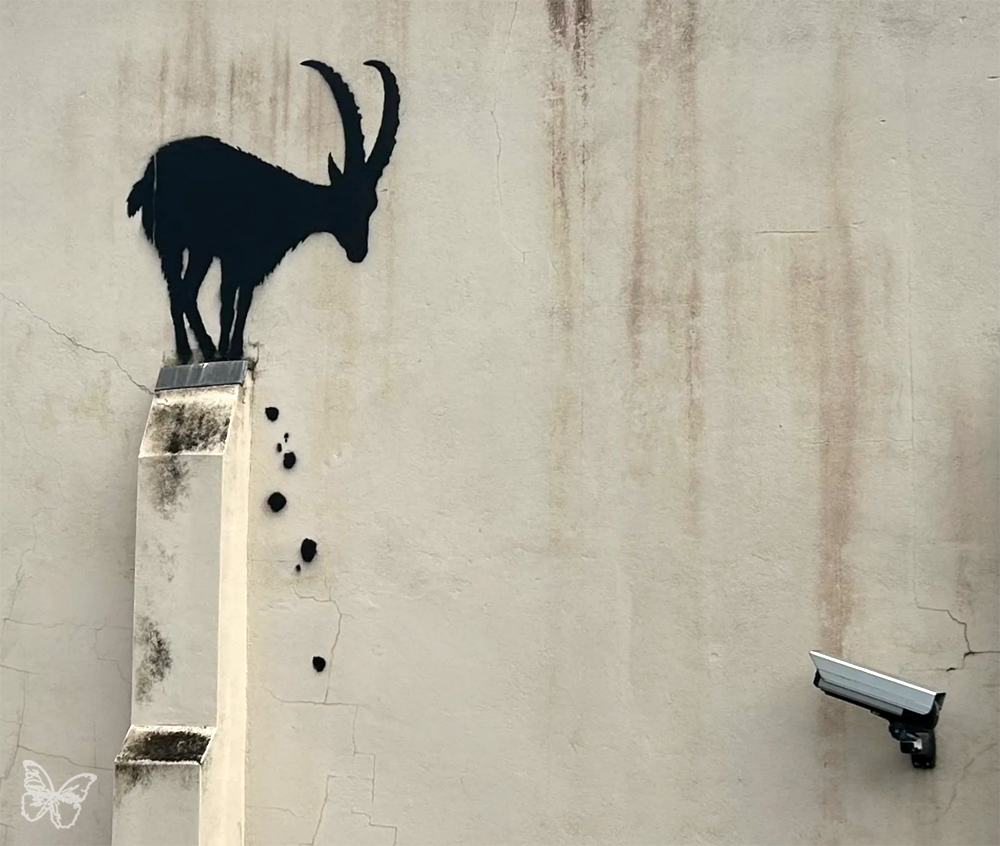 On 5 August, off Kew Bridge in Richmond, a silhouette of a goat appeared on top of a ledge looking down cheekily at CCTV camera, with debris falling down the side of the building.
