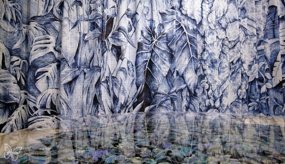 Ruffo outlines the characteristic elements of this planet. Using a ballpoint pen, he draws a primordial forest, creating an immense curtain (700 square metres) running along the entire perimeter of the space (Primordial Forest), surrounding visitors with images of plants and minerals, that evokes the time when tropical jungles covered much of the Earth’s surface.