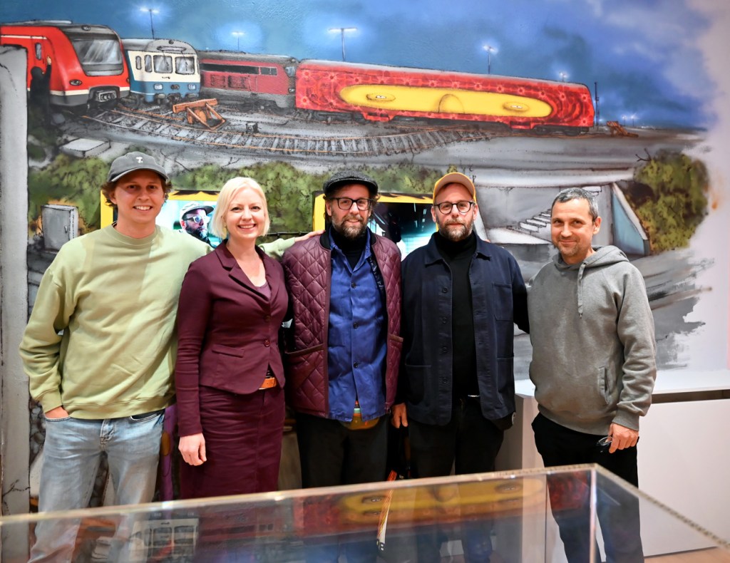 Florian Sieber from Märklin , Düsseldorf Mayor Clara Gerlach, Os Gemeos and Hood Gallery owner Peter Michalski