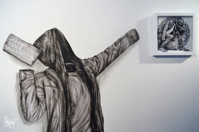 Kashink, Kraken and Madame have created 3 entirely virtual works, hidden in a secret room of the exhibition: “The Fifth Wall“. A hunt for clues in Augmented Reality can be found through QR codes to be scanned under the works.